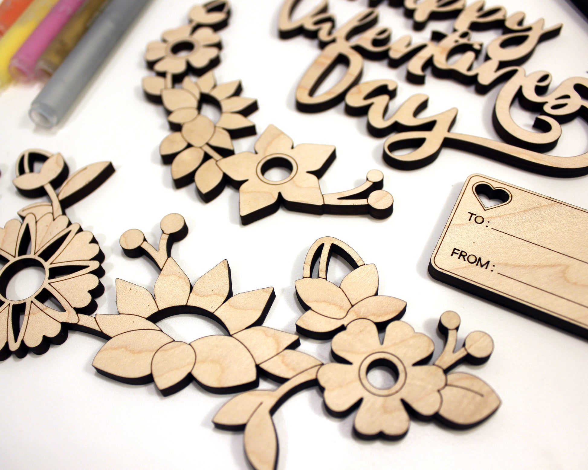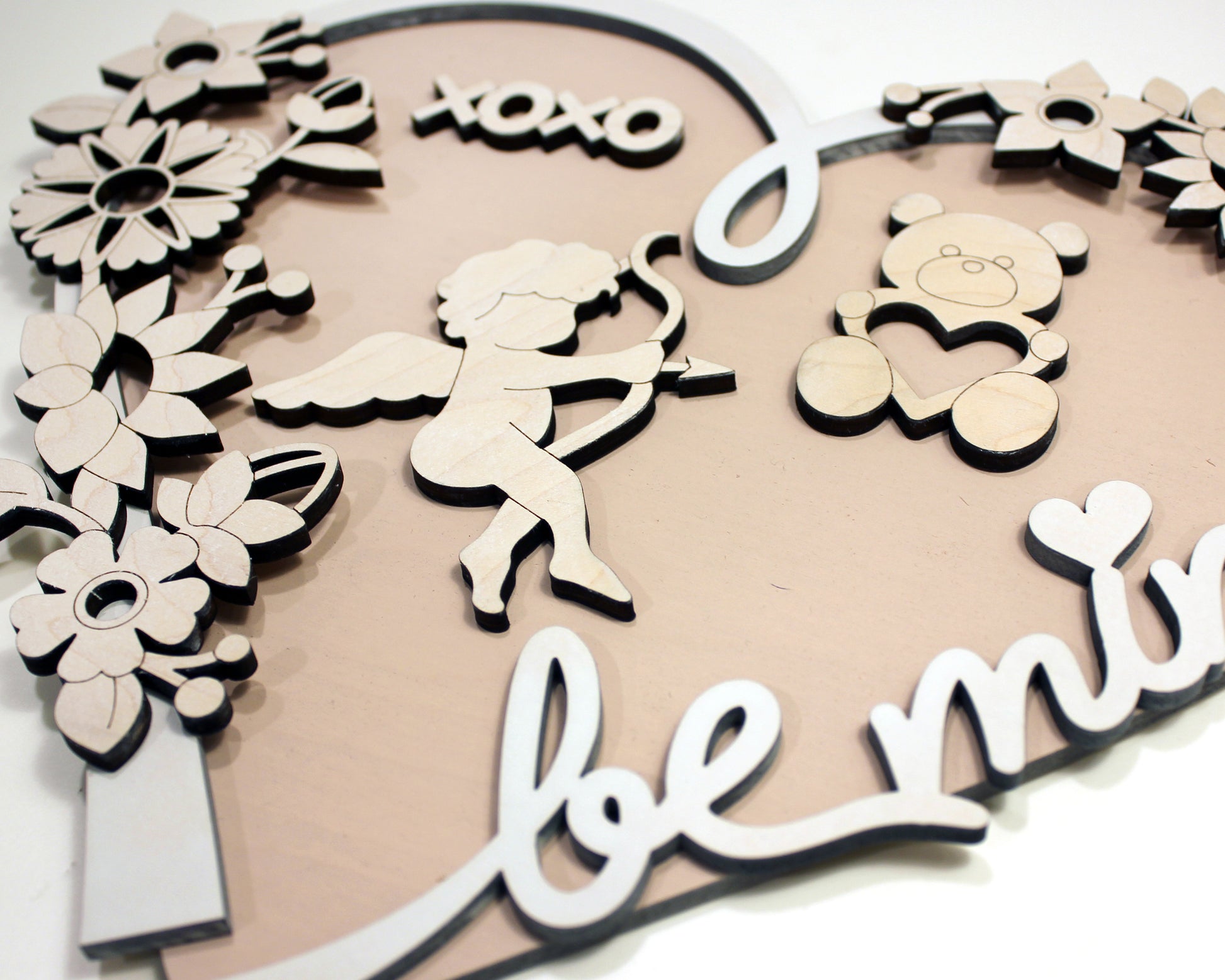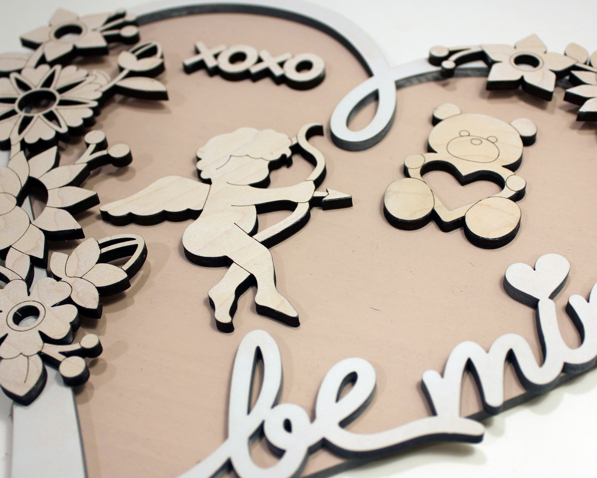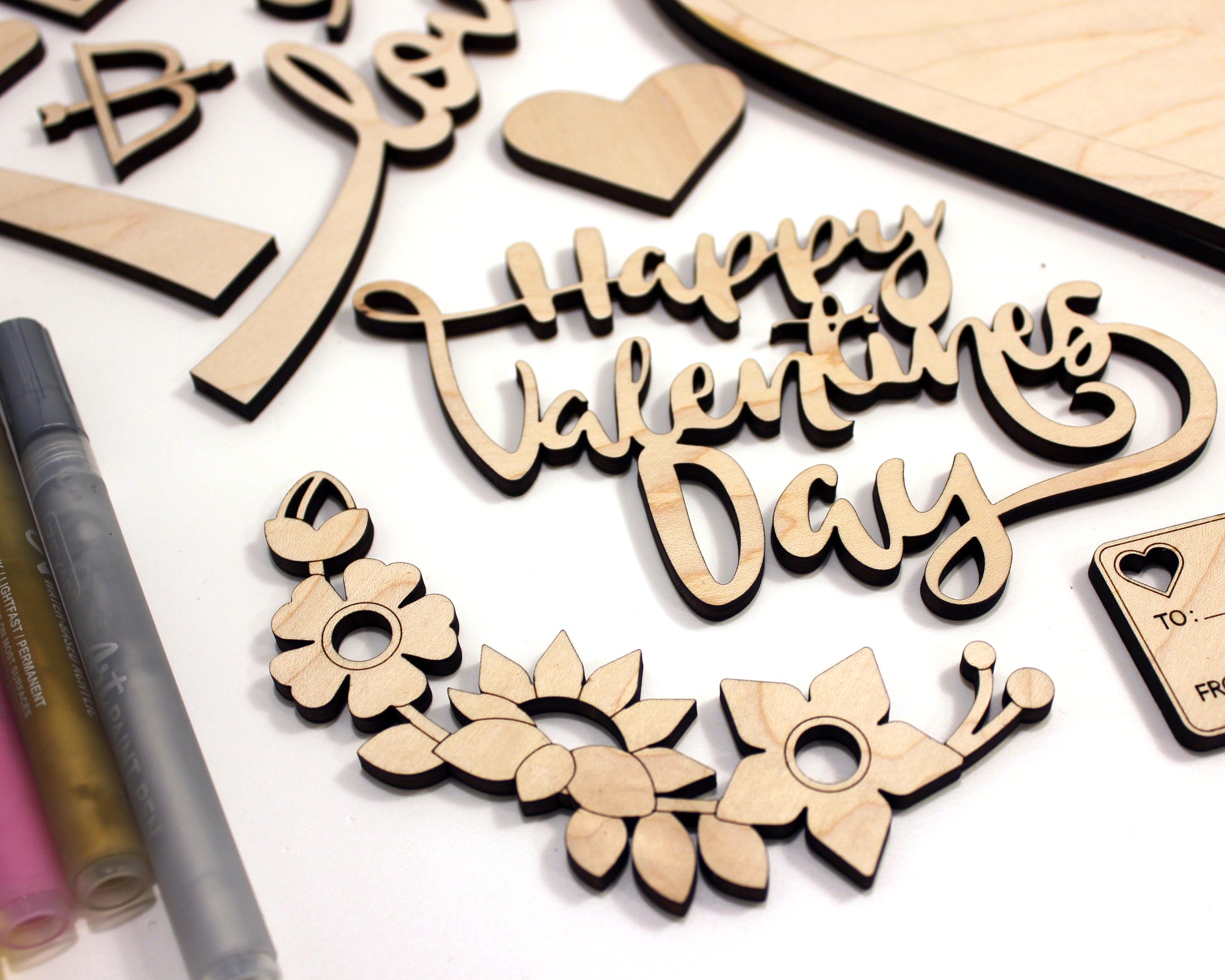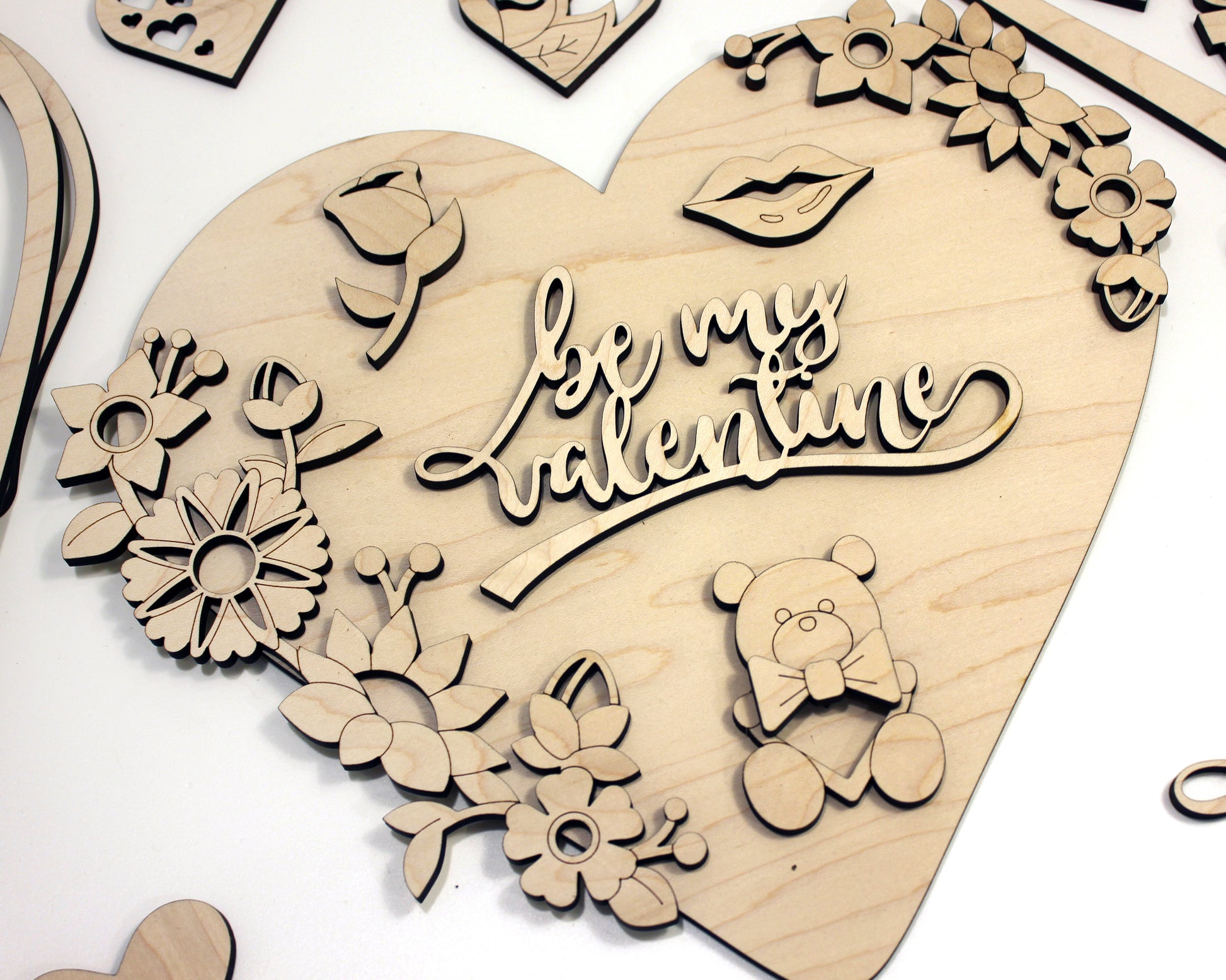 This is a unique build a heart DIY kit for Valentines day. The set includes over 25 unique valentines day icons, 2 heart backers and the option to customize a top layer heart with a special someones name. Our Valentines DIY set is crafted from wood and comes unfinished for you to paint and assemble as a craft for kids or adults.