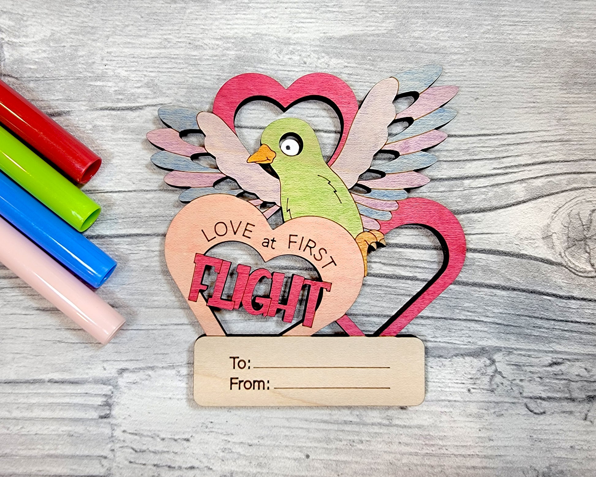unique lovable pet themed Valentines Day craft card set that allows either the giver or the receipient to color. This set includes 5 different designs featuring various house pets. Our lovable pet Valentines Day Craft Card Set is crafted from wood and comes unfinished for you to paint or color and assemble as a craft for kids or adults.