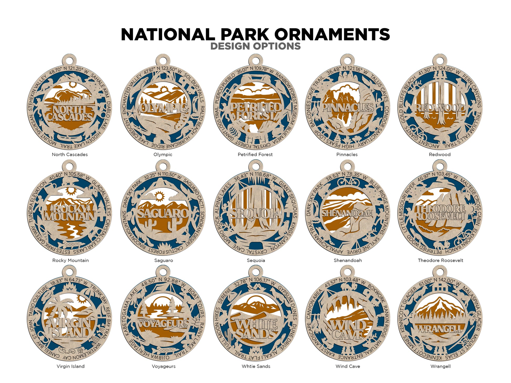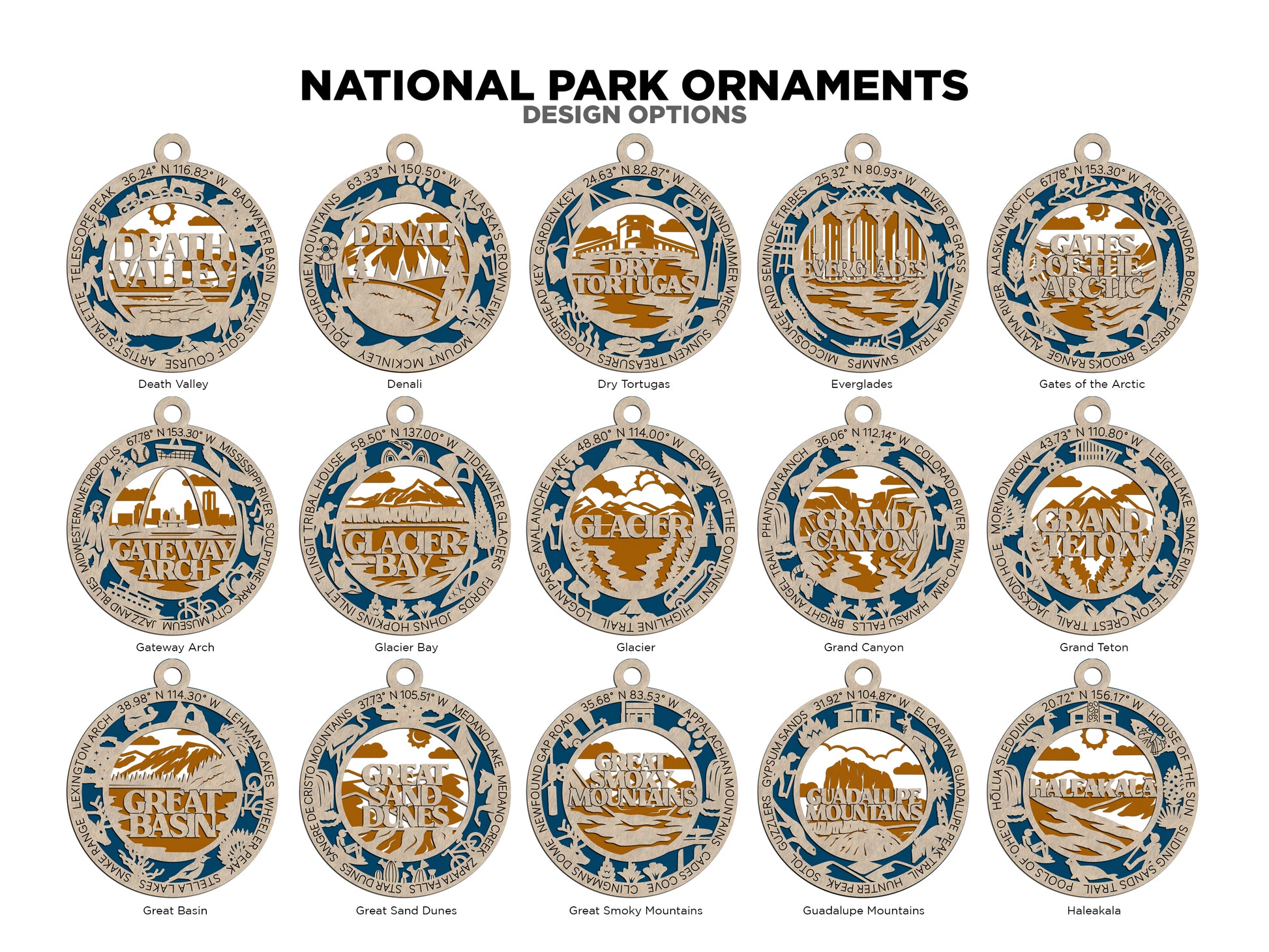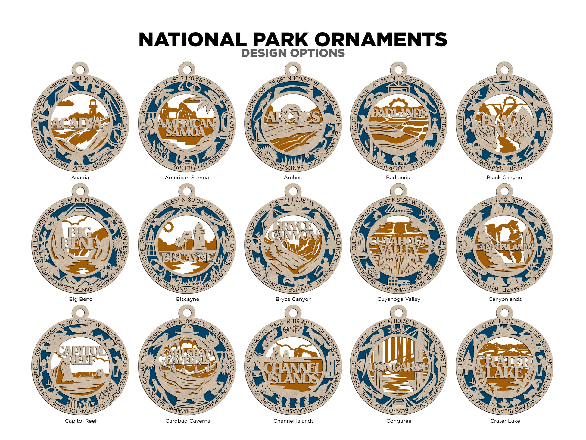 Choose between two-layer designs, with or without symbolic icons, each crafted to capture the essence of these breathtaking landscapes. Display your favorite parks, commemorate unforgettable travels, or gift a piece of nature’s beauty to loved ones this season. These ornaments serve as a meaningful reminder of the adventures we hold dear.